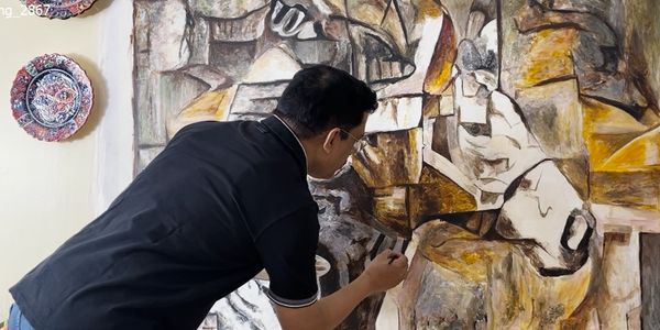 My works often reflect cultural narratives and explore themes related to identity and heritage. While being an artist is a difficult tug-of-war between my inner dreamer and critic. My journey as an artist includes a deep commitment to my craft, drawing inspiration from both Indian and Arabic culture